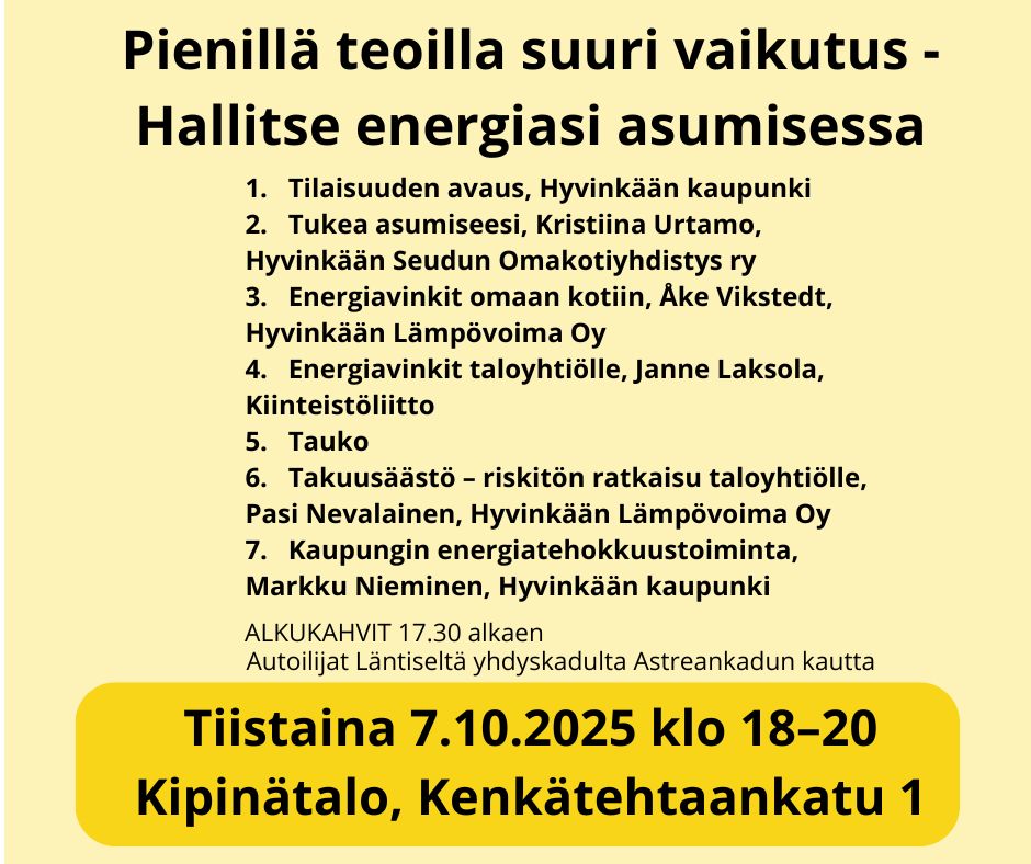 Muistutus – 7.10. Kipinässä Pienillä teoilla suuri vaikutus Julkaistu 6.10.2025 Tervetuloa kuulemaan! Kyseessä on kaikille avoin tilaisuus. Sinua saattaisi kiinnostaa Sääntömääräinen SYYSKOKOUS Kuntosalille Lepovillaan