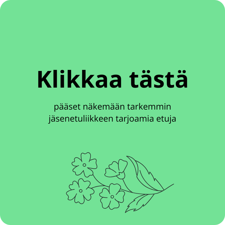 Normaalihintaisia tuotteita 5 %:n alennuksella jäsenkorttia näyttämällä.
